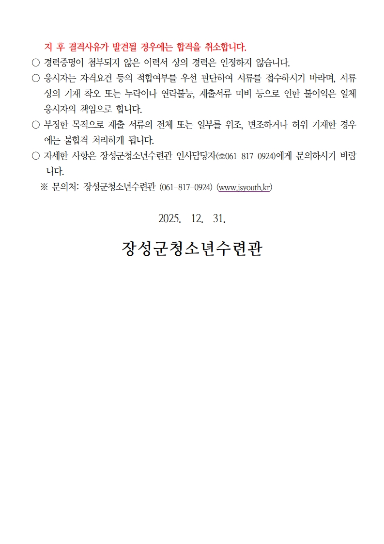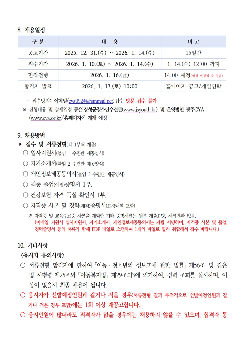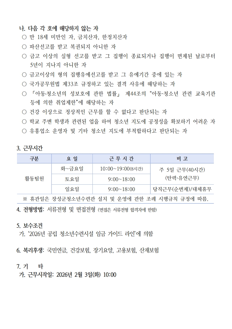 [채용] 장성군청소년수련관 활동팀원 채용공고