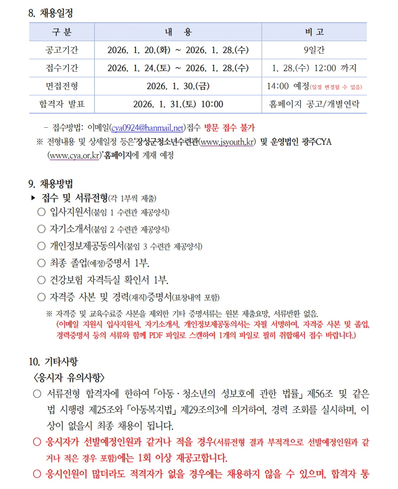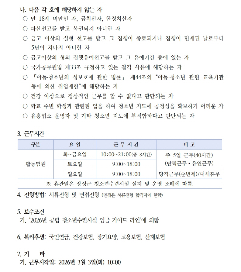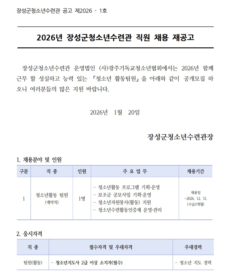 [채용공고] 장성군청소년수련관 활동팀원 채용 재공고
