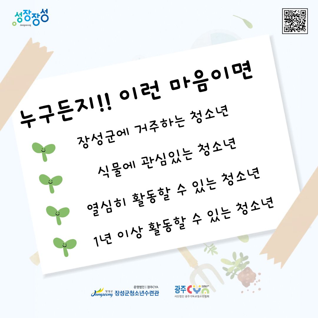 [모집] 장성군청소년수련관 청소년원예동아리 "파밍" 동아리원모집