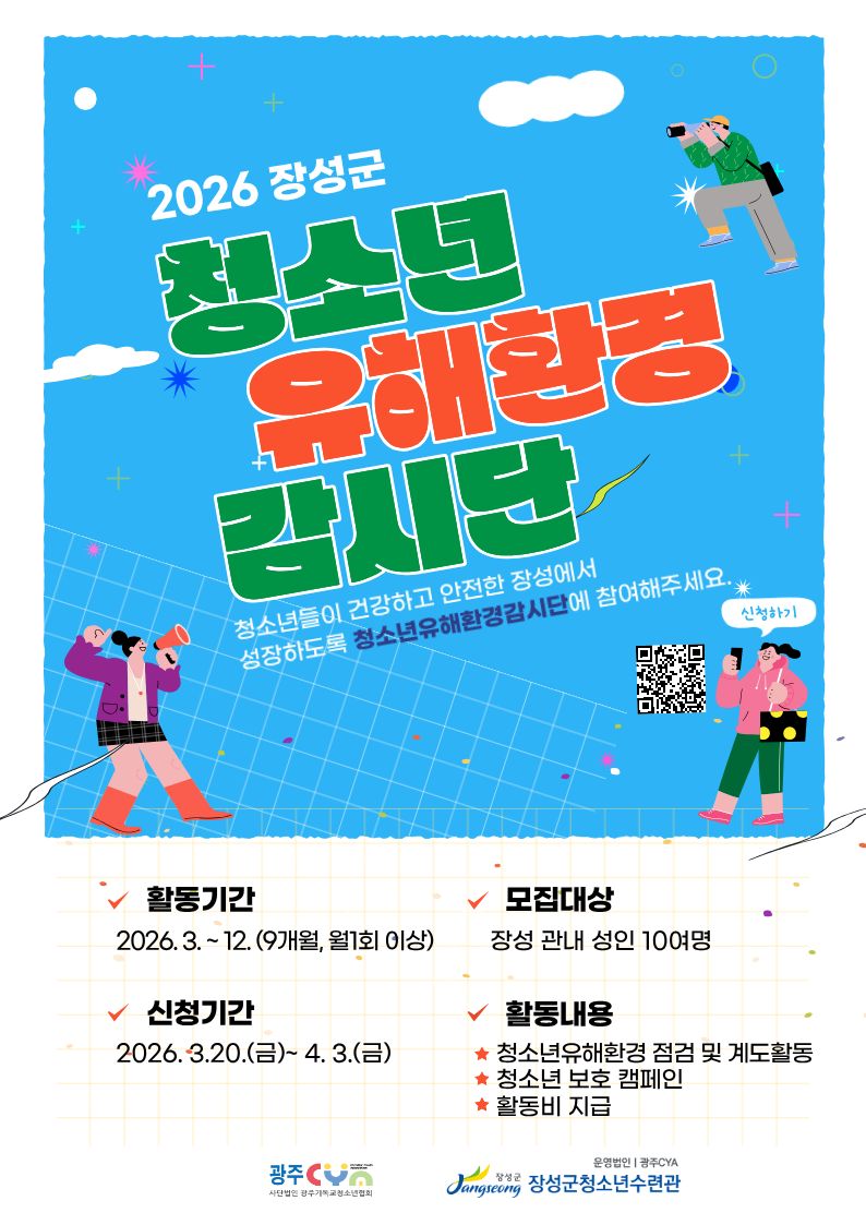 '2026 장성군청소년유해환경감시단'을 모집합니다.