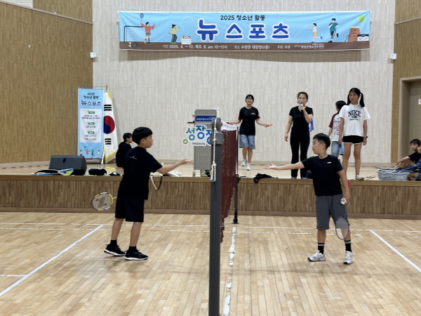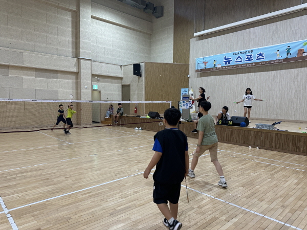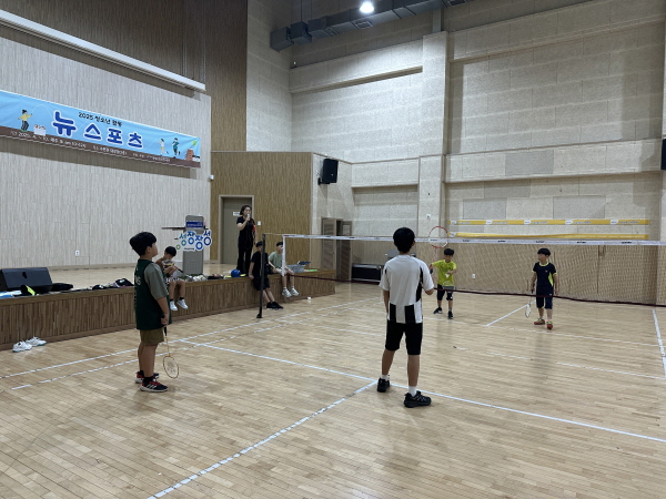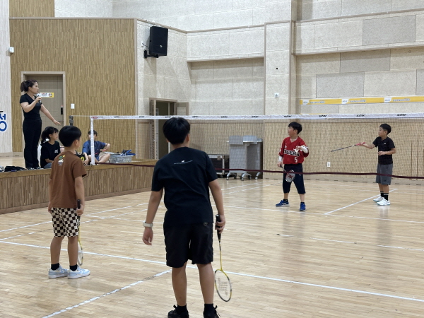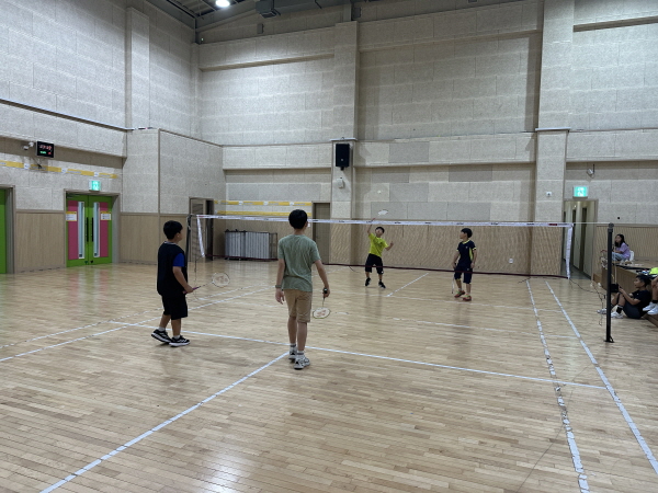 강사님이 자세와 위치 등 세세하게 알려주는 시간을 가지며 배드민턴 경기를 위한 준비를 시작합니다~
