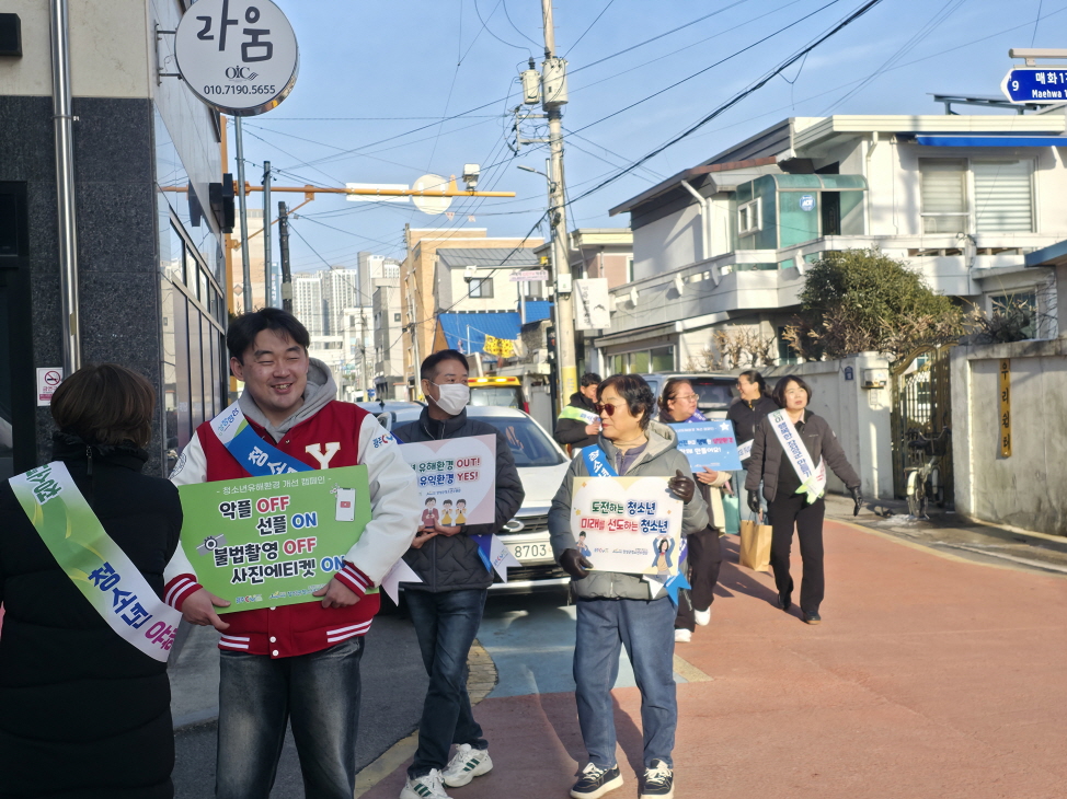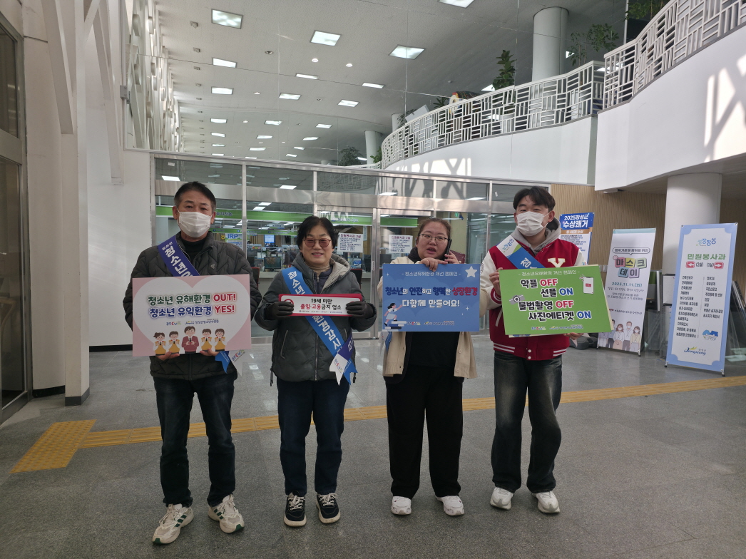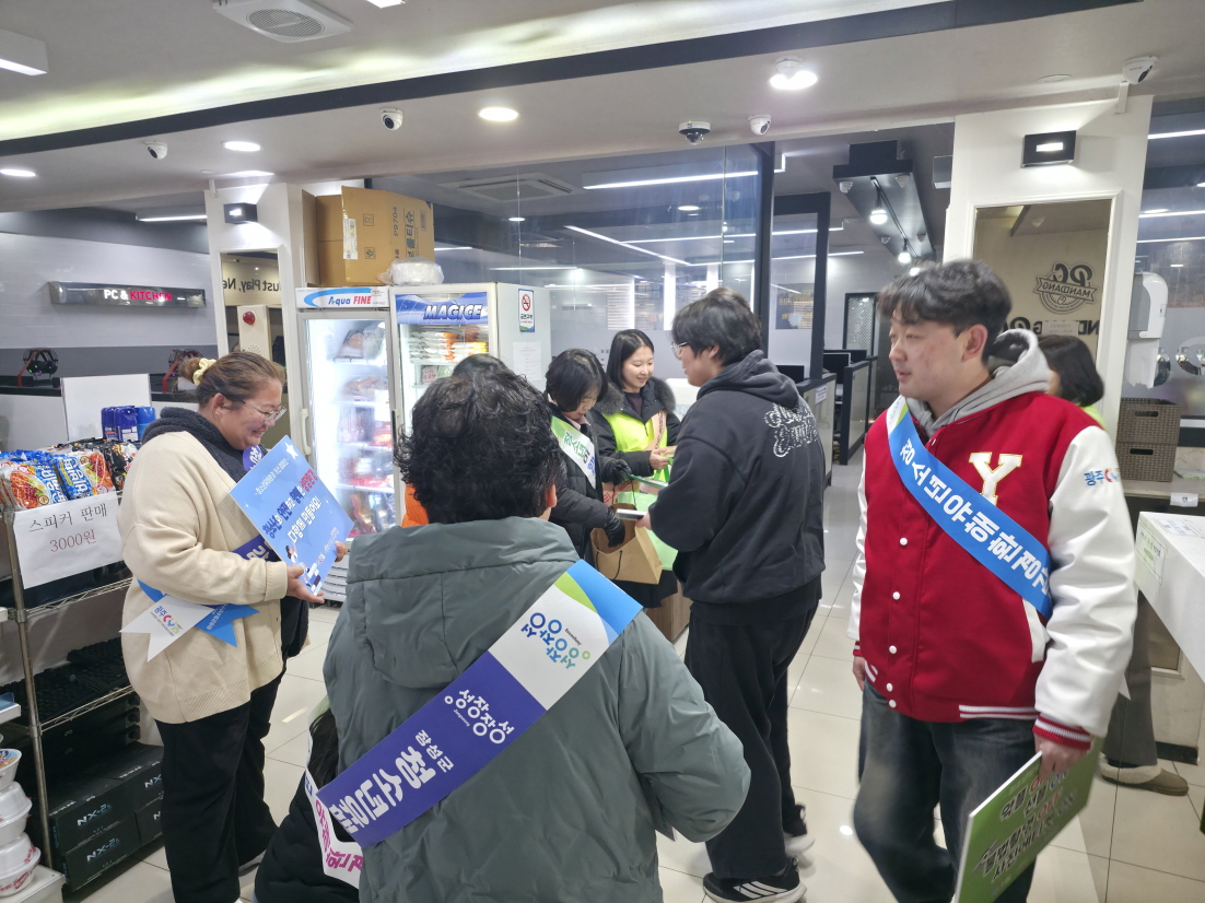 장성군청소년수련관이 운영하는 「2026 장성군청소년유해환경감시단」은 3일 겨울방학 계기 청소년 유해환경 점검 및 계도활동을 실시하였습니다. 이번 점검은 겨울방학 기간 청소년들의 일탈 가능성을 예방하고 안전한 생활환경을 조성하기 위해 실시됐으며, 청소년 이용이 잦은 PC방 및 학원, 인근 상가 밀집지역을 중심으로 청소년 음주·흡연 등 일탈행위에 대한 점검과 함께 담배 판매업소들에 대한 계도활동도 병행하였습니다. 2026 장성군청소년유해환경감시단은 올해 중점 사업으로 관내 숙박업소들을 대상으로 집중 점검 및 계도를 추진합니다. 특히 청소년의 ‘출입 및 고용 금지’, ‘이성 혼숙 금지’ 규정 준수 여부를 지속적으로 확인하여 안전한 청소년 성장 환경 조성에 총력을 기울이겠습니다. |