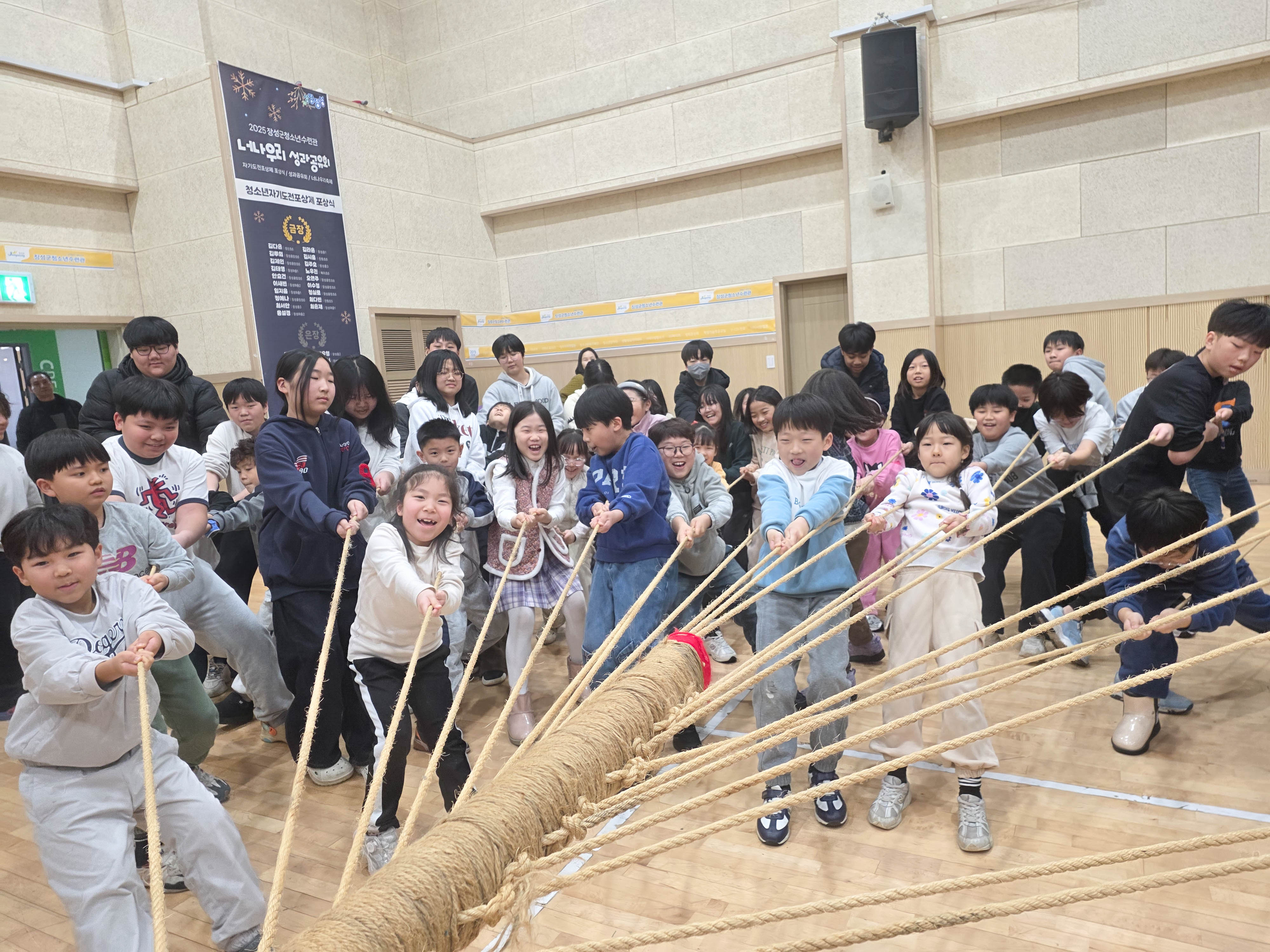 친구들과 힘을 모아 도전하는 줄다리기 등