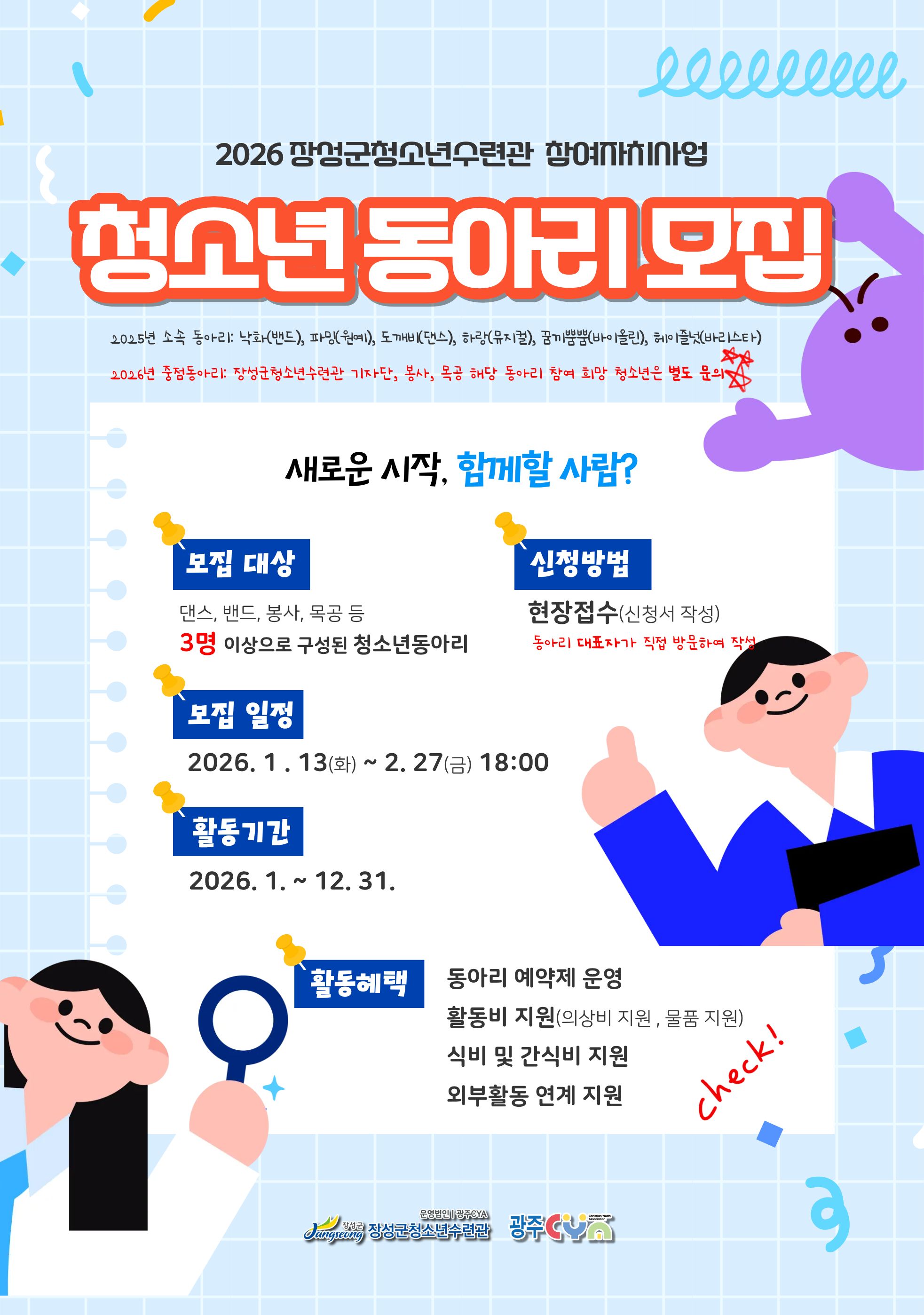 2026년 장성군청소년수련관 청소년자치동아리 모집합니다!
