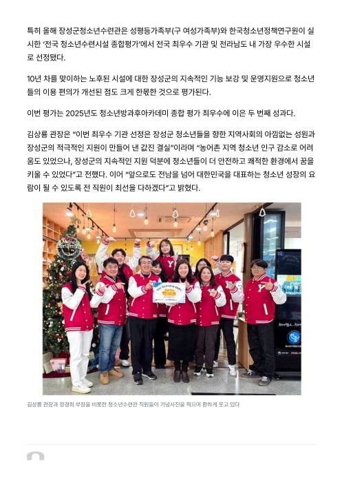 [260114] 장성군청소년수련관, ‘2026 청소년자기도전포상제’ 참가자 모집