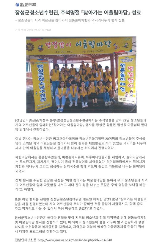 [20180922] 장성군청소년수련관, 추석명절 『찾아가는 어울림마당』성료